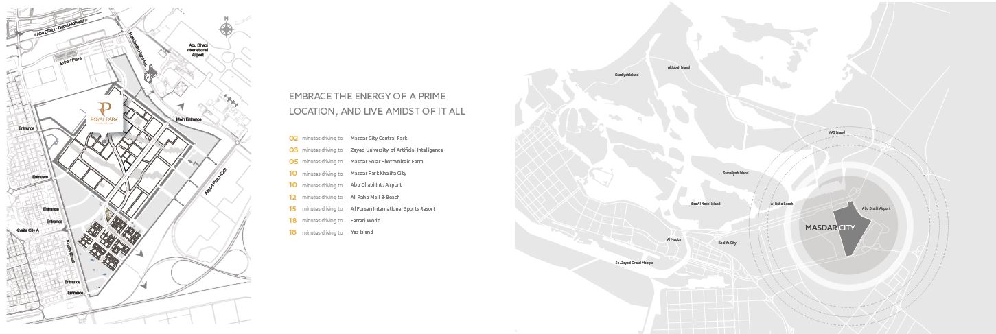 Where luxury living reaches new heights and dreams find their address. Royal Park Masdar City nestled in the heart of the city, amidst lush greenery and scenic views of Masdar Central Park, this residential community is a royal haven that captivates your senses. Comprising 6 clusters, Royal Park is our largest community so far in Masdar city. The architectural marvels of buildings and Townhouses that adorn every corner of the community showcase a seamless blend of timeless elegance and modern design, crowned by world-class amenities, promising an exceptional living experience. Each residence within Royal Park Masdar City has been thoughtfully crafted to exude opulence and sophistication, offering residents a truly regal lifestyle.